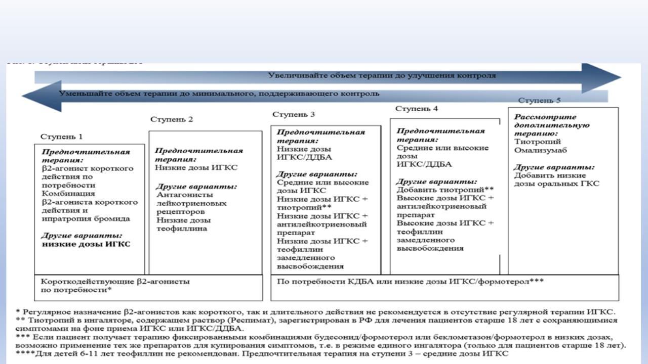 Ступенчатая фармакотерапия БА, Клинические рекомендации РРО, 2016.