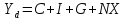 Y = C(личные потребительские расходы) + Ig(валовые частные внутренние инвестиции) + G(государственные закупки товаров и услуг) + NX(чистый экспорт)