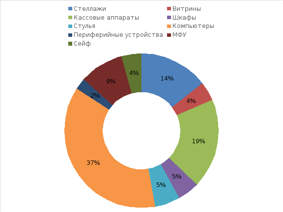На рисунке 10 отображено графическое представление процентного соотношения элементов материально-технической базы.