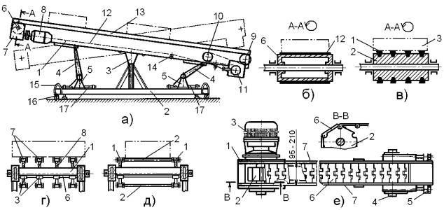 Рис.5.2. Конструктивные исполнения ленточных, ременных, цепных и пластинчатых конвейеров