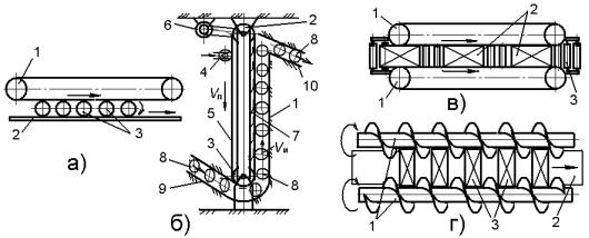 Рис.5.7. Конструктивные схемы комбинированных транспортирующих систем