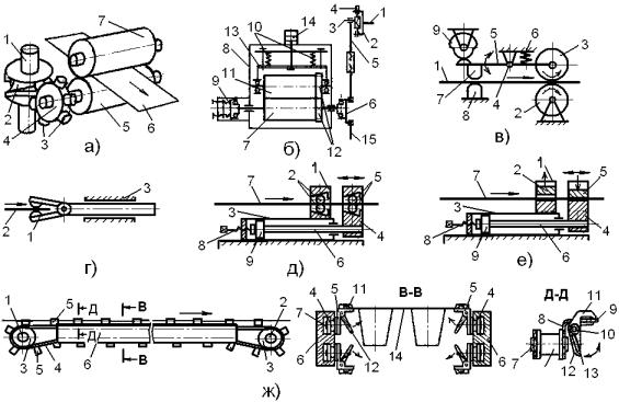 например, подающий механизм челюстного (клещевого) типа (рис.7.4г),