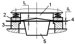Рис. 11.22. Схема штампа со скосами на пуансоне: 1 – пуансон; 2- прижим; 3 – матрица; 4 – упаковочное полотно; 5 – отделяемая упаковочная единица.