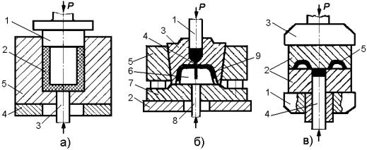 Рис.13.8. Схемы процессов прямого (а) и литьевого (б – в) прессования