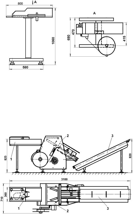 Водном из конструктивных исполнений, такой автоматизированный упаковочный комплекс (рис.10.7) может включать в себя устройство для раздува пакета 1, клипсаторную машину 2 и конвейер 3, отводящий готовые упаковочные единицы. В процессе работы этого комплекса оператор берет очередной пакет и раскрывает потоком воздуха, создаваемым устройством 1, а затем вкладывает в него упаковываемую продукцию, например, нарезанный хлеб, и далее кладет упаковочную единицу на наклонный стол клипсаторной машины 2. По наклонному столу эта упаковочная единица перемещается на исполнительную позицию машины, где по сигналу соответствующего датчика горловина пакета автоматически пережимается и укупоривается клипсом, а затем готовая упаковочная единица подается на отводящий транспортер 3, перемещающий ее на позицию укладки в транспортную тару или в специальную тару-оборудование, предназначенную для доставки товара потребителям. Производительность этого комплекса достигает 1500 упаковок в час.