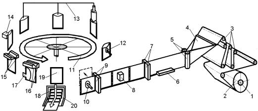 а также механизм 18, передающий готовые упаковочные единицы 19 с карусельного стола 11 на отводящий транспортер 20.