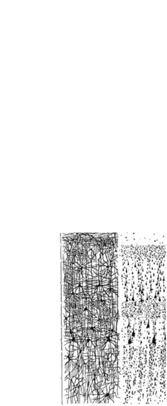 Рис. 26. Схема строения коры конечного мозга (нейроцитоархитектоника)