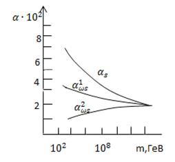 двома константами взаємодій. Характер залежності цих констант від маси