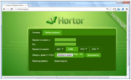 На головні сторінці системи Hortor