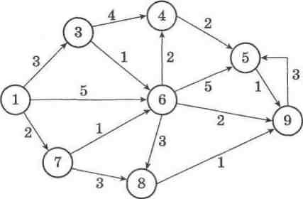 Отже, перейдемо до суті задачі в термінах мережі. Розгляне-мо приклад деякої мережі, яка мае т вершин (т = 9) і п дуг (п " 15), що з'єднують ці вершини (мал. 52).