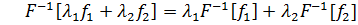 Дана властивість називається лінійним перетворенням Фур’є (відповідно і оберненого перетворення Фур’є). Воно безпосередньо слідує з лінійності інтегралів формул (43) та (45).