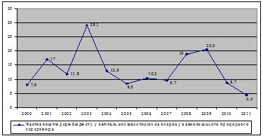 демонструючи періодичне чергування зростання і скорочення. У 2011 р. частка