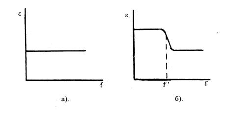 Рис.7. Влияние частоты электромагнитного поля на диэлектрическую проницаемость неполярного (а) и полярного (б) диэлектриков