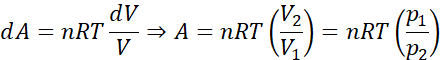 dA=pdV => A=p(V2-V1)