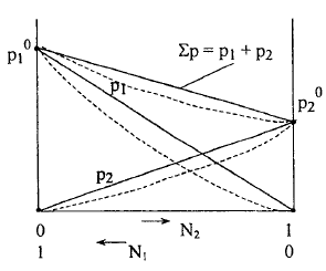 Если система полностью подчиняется закону Рауля, на графике будут наблюдаться прямолинейные зависимости.