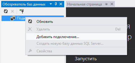 В окне Обозреватель баз данных необходимо щелкнуть ПКМ по узлу Подключения данных и в контекстном меню выбрать пункт Добавить подключение … (рис. 2).
