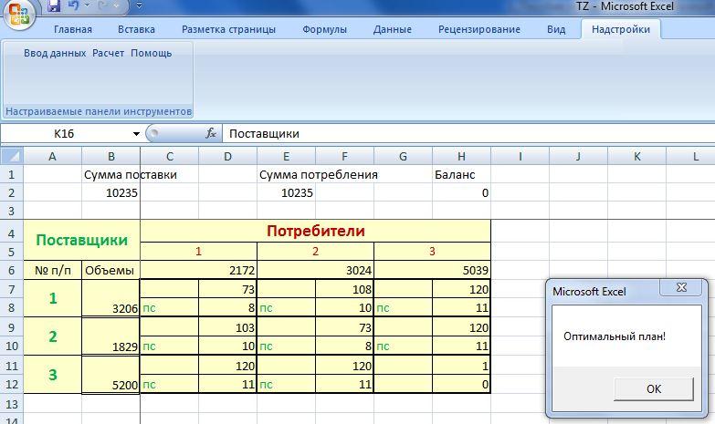 Нажимаем «Расчет». Появляется уведомление В нашем примере, что план базисный, что означает, что количество поставок равно m+n-1, т.е 5.
