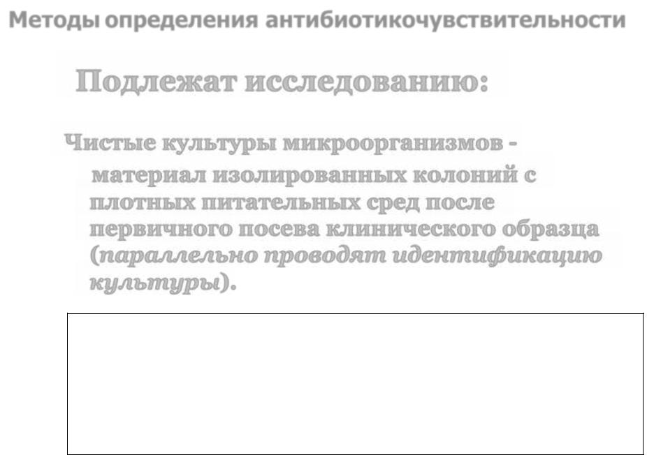 Определение спектра чувствительности выделенных штаммов к антибиотикам регламентируется методическими указаниями МУК 4.2.1890-04 «Определение чувствительности микроорганизмов к антибактериальным препаратам».