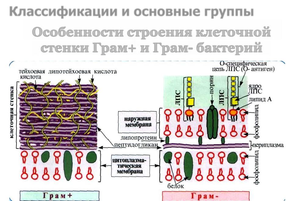 Особенности строения клеточной стенки Грам+ и Грам- бактерий
