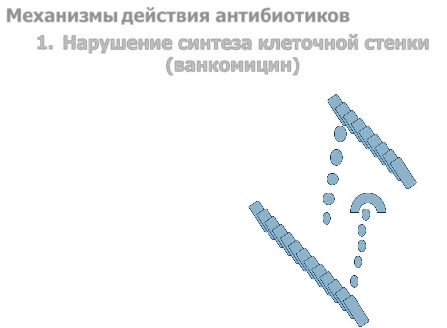 1. Нарушение синтеза клеточной стенки (ванкомицин)