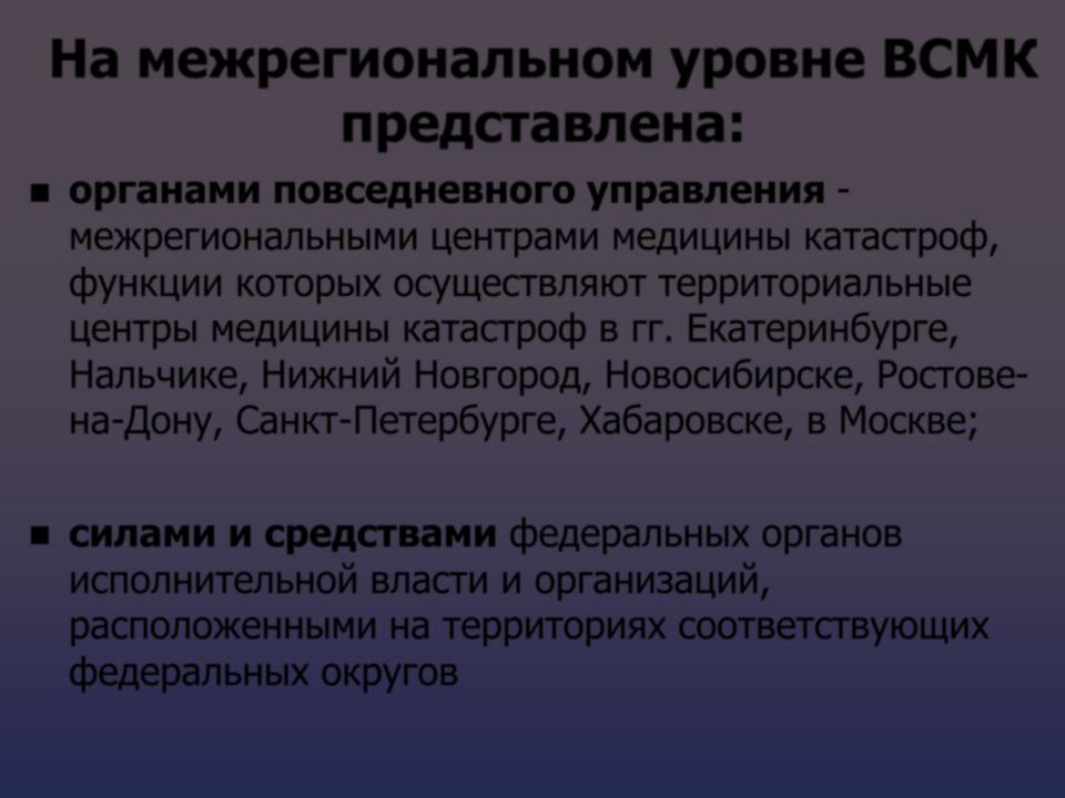межрегиональными центрами медицины катастроф, функции которых осуществляют территориальные центры медицины катастроф в гг. Екатеринбурге, Нальчике, Нижний Новгород, Новосибирске, Ростове- на-Дону, Санкт-Петербурге, Хабаровске, в Москве;