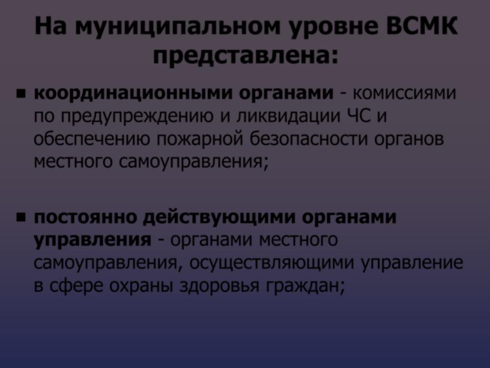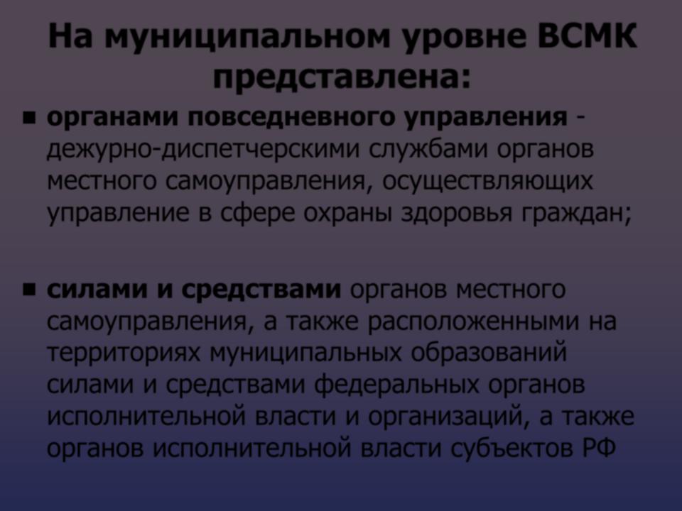 На муниципальном уровне ВСМК представлена: