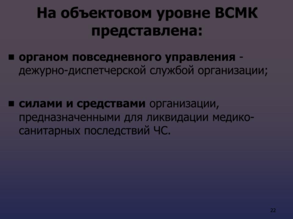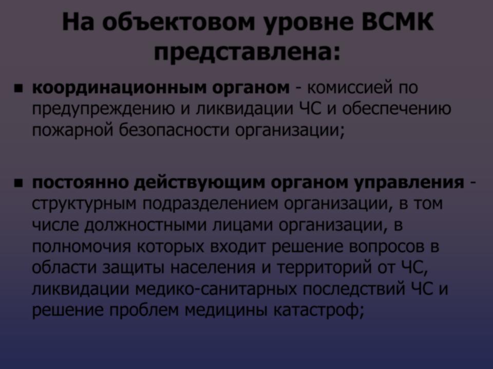 На объектовом уровне ВСМК представлена: