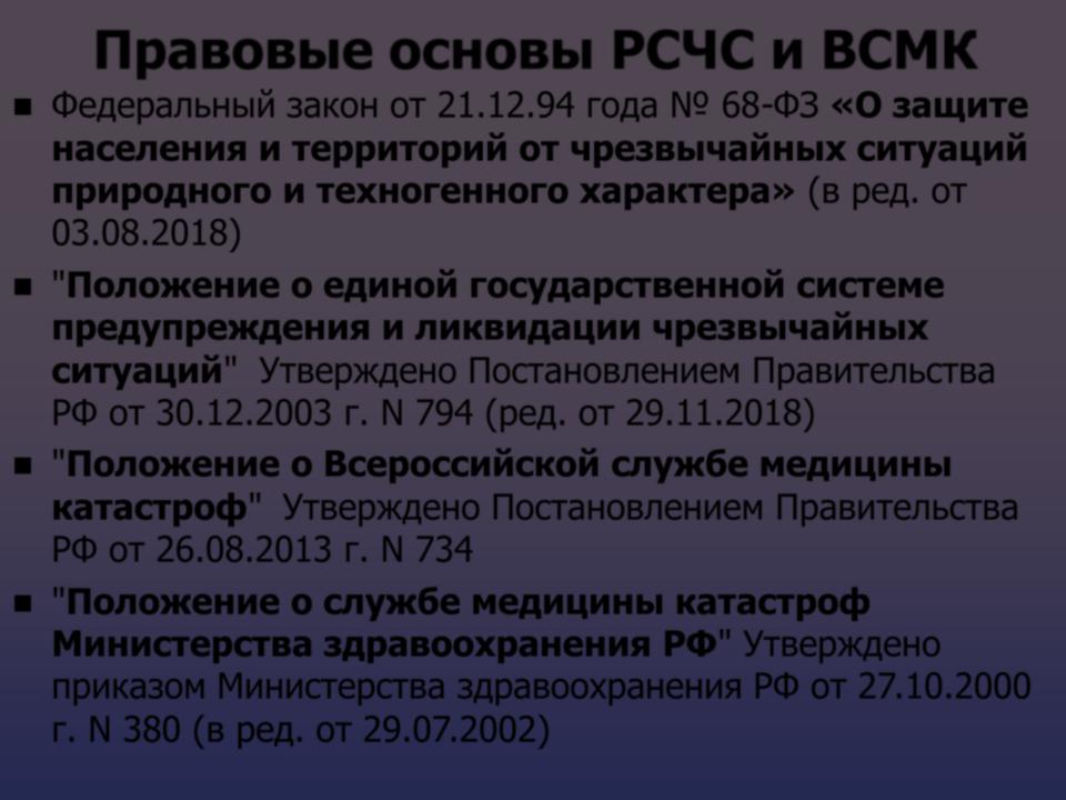 Правовые основы РСЧС и ВСМК