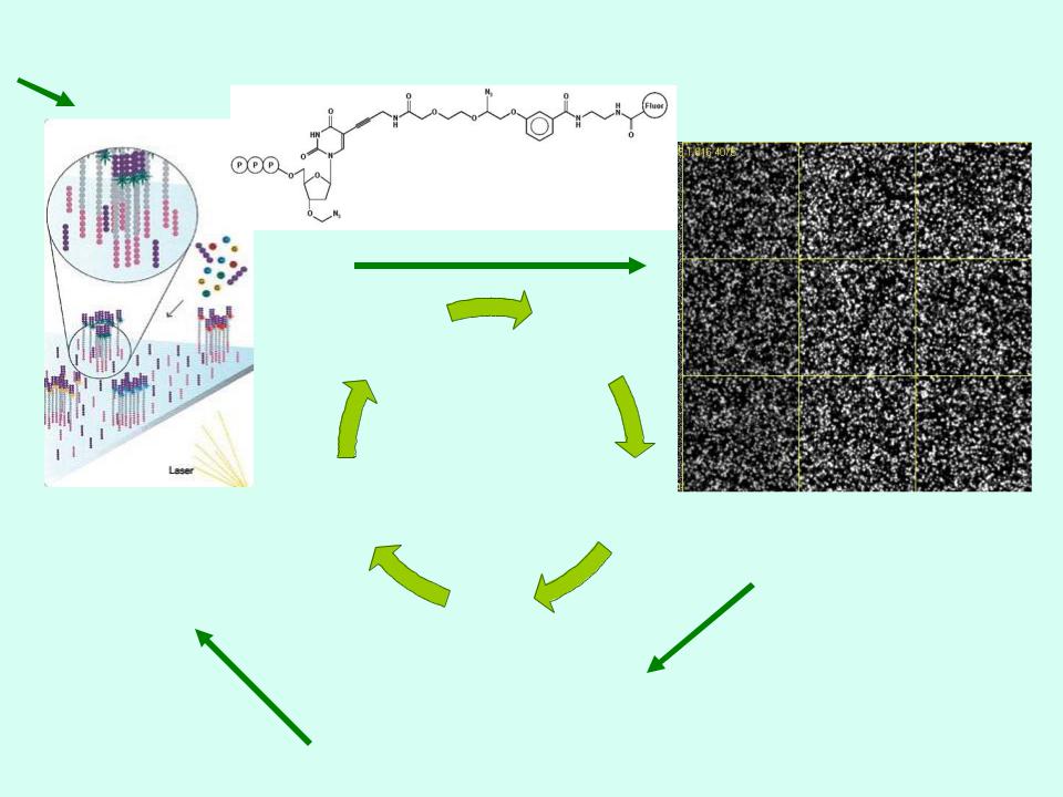 реагенты (флуоресцентно меченые терминированные dNTP и полимеразу)