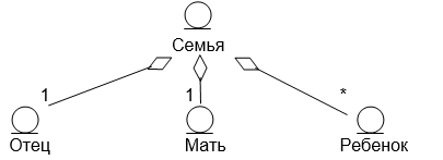 Отношение агрегации указывает на отношение «часть»-«целое» и отображается сплошной линией с незакрашенным ромбиком со стороны «целого».