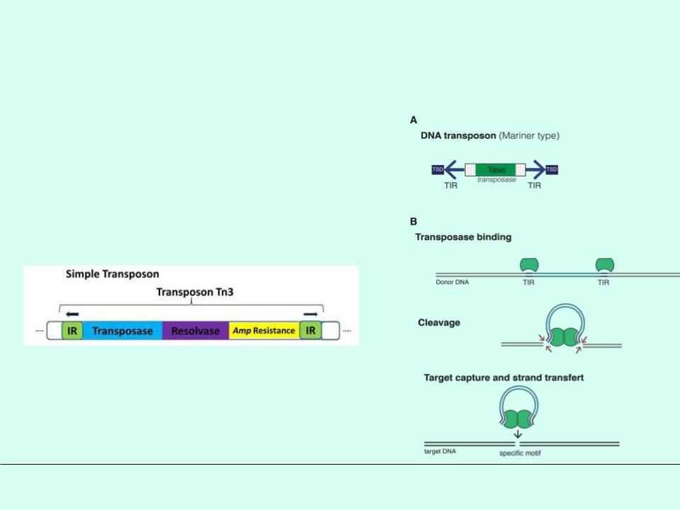 (cut and paste) Транспозазой и Резольвазой. Редкие у человека, например, mariner.