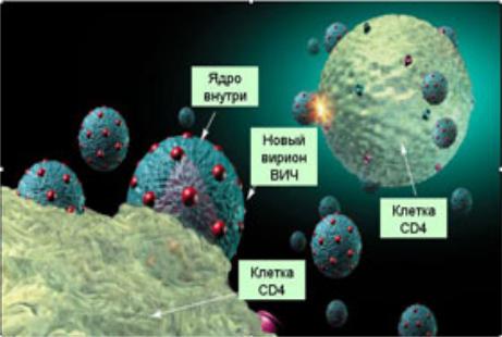 ВИЧ перемещается в ядро клетки образует кольцевую структуру и встраивается в ДНК клетки Т4-лимфоцита