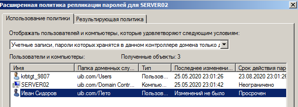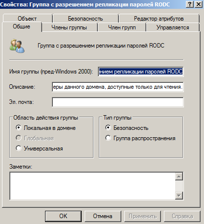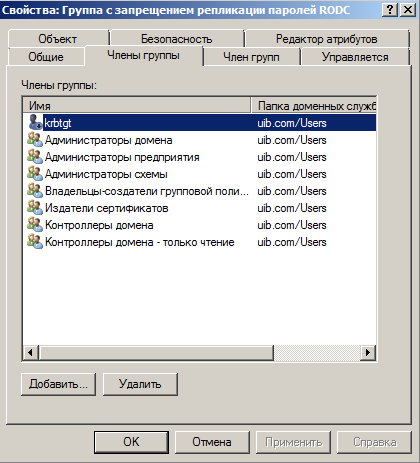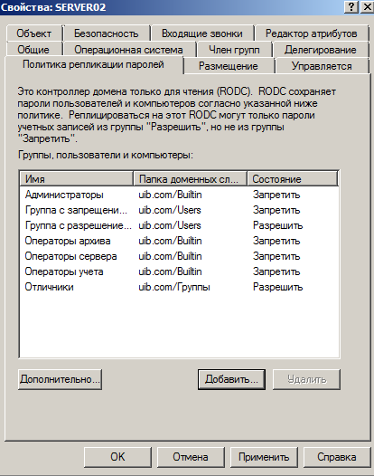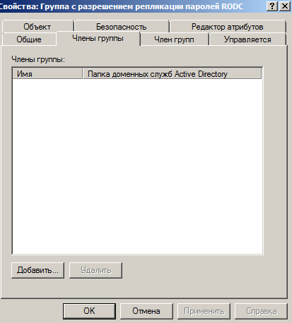 На рис. 3 показана група, паролi учасники якої будуть реплiкуватись. Пiсля пiдключення до домену, сервер RODC не має облiкових записiв для реплiкацiї, цi записи потрiбно додавати окремо.