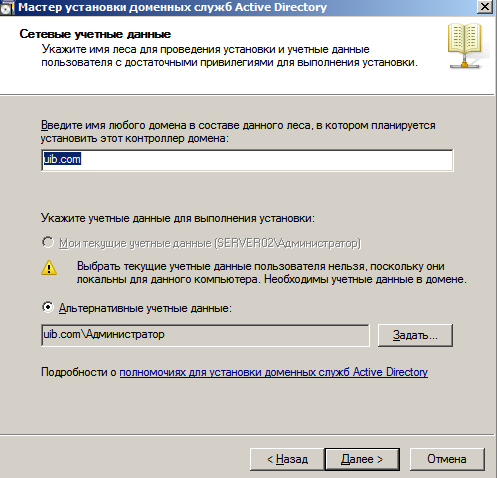 На рис. 1 показан процес пiдключення до домена uib.com сервера RODC. Для пiдключення сервери знаходяться в однiй внутрiшнiй мережi. Пiдключення здійснюється з rodc сервера, тому для з'єднання потрiбно мати облiковi данi адмiнiстратора домена. Також потрiбно вибрати, де будуть зберiгатись логи сервера.