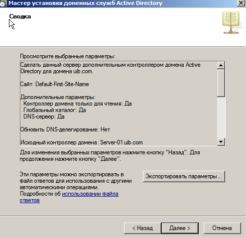 На рис. 2 показано сводку даних, що будут показанi перед пiдключенням до домена. Пiсля пiдключення сервер потрiбно буде перезагрузити.