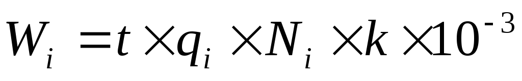 где qi, Ni – норма и число мест i-гo потребителя, л/сут и тыс. мест.