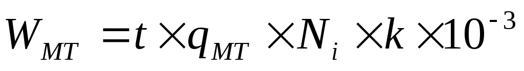 где Wмт – потребность в воде на содержание, обслуживание или ремонт тракторного, автомобильного парков, ремонтных мастерских, тыс.м3;