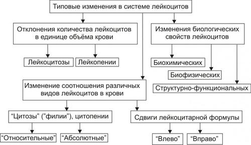 Отклонения количества находящихся в периферической крови лейкоцитов, а также качественные изменения в них в определённой степени позволяют судить о наличии патологического процесса и динамике его течения, т.е. имеют диагностическое значение (в отличие, например, от лейкозов — самостоятельных заболеваний, имеющих определённые причины, механизмы развития, проявления и требующие специального лечения).