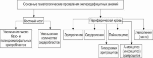 Рис. 21–14. Основные гематологические проявления железодефицитных анемий.