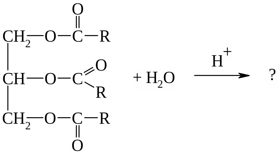 132 Жиры могут подвергаться кислотному гидролизу. Укажите, какие продукты при этом образуются.
