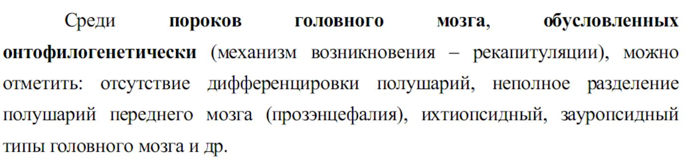 Головной мозг закладывается в виде вздутия передней части нервной трубки. Вздутие делится на три мозговые пузыря: передний, средний и задний. Этот этап называется стадией трех мозговых пузырей На этом этапе у человека может развиться тяжелый порок - ателэнцефалия.