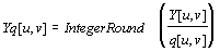 Производим квантование. В принципе, это просто деление рабочей матрицы на матрицу квантования поэлементно. Для каждой компоненты (Y, U и V), в общем случае, задается своя матрица квантования q[u,v] (далее МК).