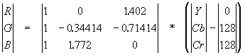 Упрощенно перевод из цветового пространства RGB в цветовое пространство YCrCb можно представить с помощью матрицы перехода:
