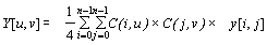 Применяем ДКП к каждой рабочей матрице. При этом мы получаем матрицу, в которой коэффициенты в левом верхнем углу соответствуют низкочастотной составляющей изображения, а в правом нижнем — высокочастотной.