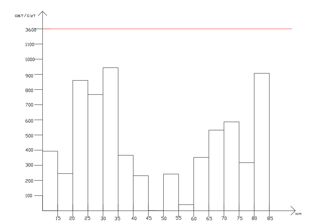 Цель работы: построить график изменения пропускной способности участка автомобильной дороги 70-75 км.