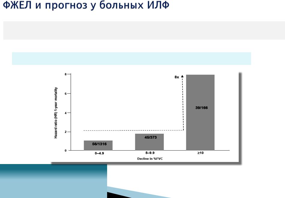 Надежный предиктор летальности у больных ИЛФ – снижение FVC на 10% и более за 6 мес1-3