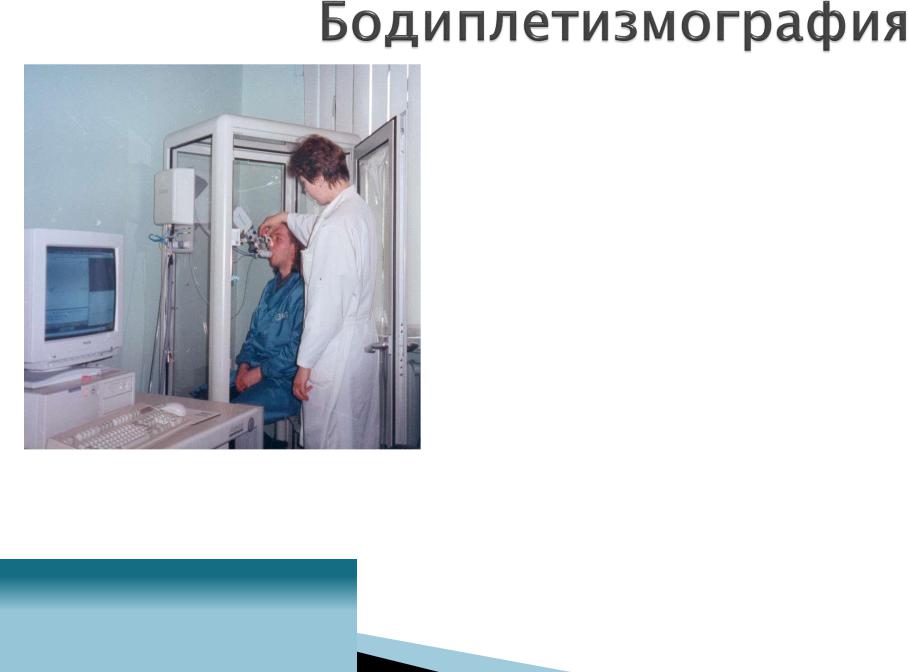 Колебания PA измеряют путем регистрации пропорциональных им колебаний давления внутри герметичной кабины плетизмографа (Pbox), возникающих при дыхании в ней человека.