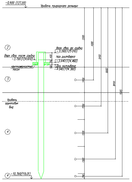 Расчетная глубина погружения нижнего конца сваи от поверхности грунта 9,49 м.