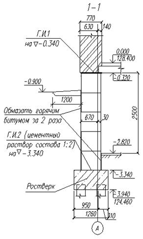Рисунок 3.5 - Схема расположения свай по оси А. Сечение 1-1