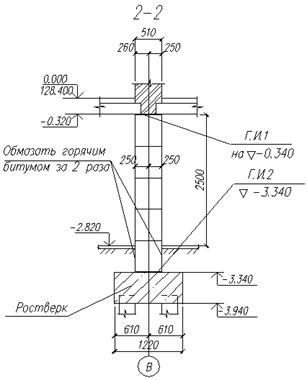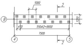 Рисунок 3.6 - Схема расположения свай по оси В. Сечение 2-2